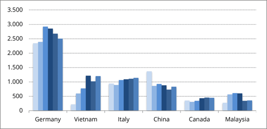 Also, the dynamics of the kitchen furniture international trade are expected to be slightly stronger, allowing pre-pandemic levels to be exceeded. In terms of exports, Germany confirms itself as the undisputed leader worldwide. Among new countries gaining ground in the kitchen furniture export landscape, Vietnam has grown enough to surpass both China and Italy in the last five years.