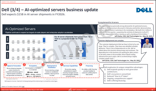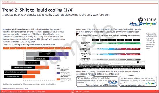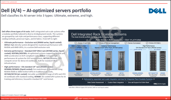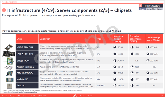 • 技术概述: 重点关注两个基本结构,本报告对IT基础设施和设施基础设施进行了详细分析,涵盖晶片组、AI伺服器、液冷系统和配电系统等七个子类别。