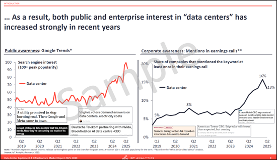 由于生成式人工智慧对运算能力的巨大需求,领先的科技公司和政府的大规模投资正在深刻地改变全球资料中心环境。本报告对资料中心设备市场进行了全面分析,包括 IT 基础设施(伺服器、网路和储存)和设施基础设施(电力、冷却、布线和安全),并提出了市场预测、竞争格局、关键趋势和挑战。