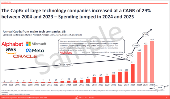 • 市场规模及展望: 提供全球市场规模及至2030年的预测,并按地区和主要基础设施行业进行划分。 分析关键的市场成长推动因素和阻碍因素,例如AI的普及和超大规模资料中心的资本支出(CapEx)。