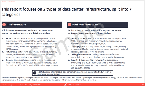 • This report focuses on 2 types of data center infrastructure, split into 7 categories