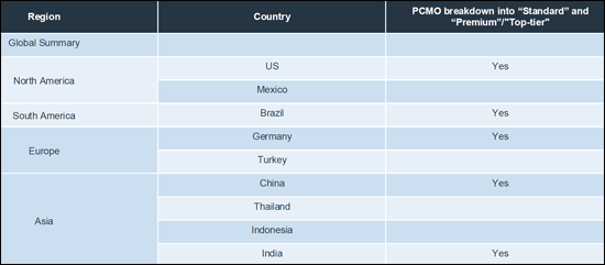 New - more granular market view: Full synthetic PCMO will be split into "Flagship" (Standard) and "Premium" in 5 key markets to evaluate different trends and opportunities for those market segments