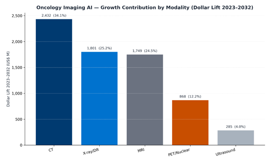 • Figure 4: Global Oncology Imaging AI Growth Contribution by Modality: Dollar Lift 2023 to 2