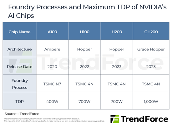 - Table 1: Foundry Processes and Maximum TDP of NVIDIA's AI Chips