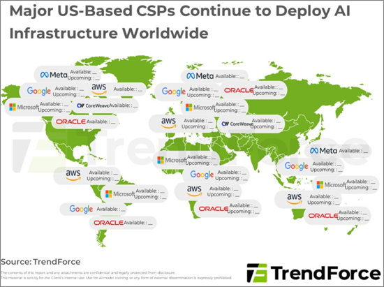 - Major US-Based CSPs Continue to Deploy AI Infrastructure Worldwide, Aiming to Gain a Competitive Edge in Computing Power